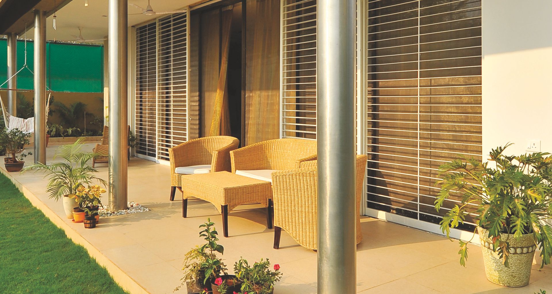 Design Philosophy: This bungalow is designed as a composite structure with maximum open space retained in a garden form. The courtyard was redundant as the plot size was large.