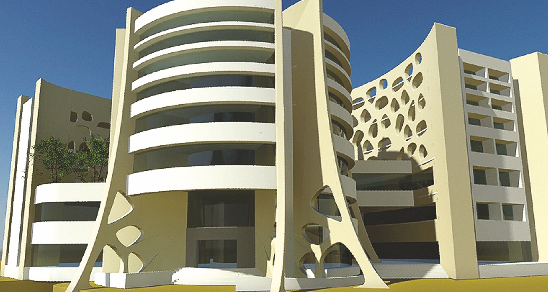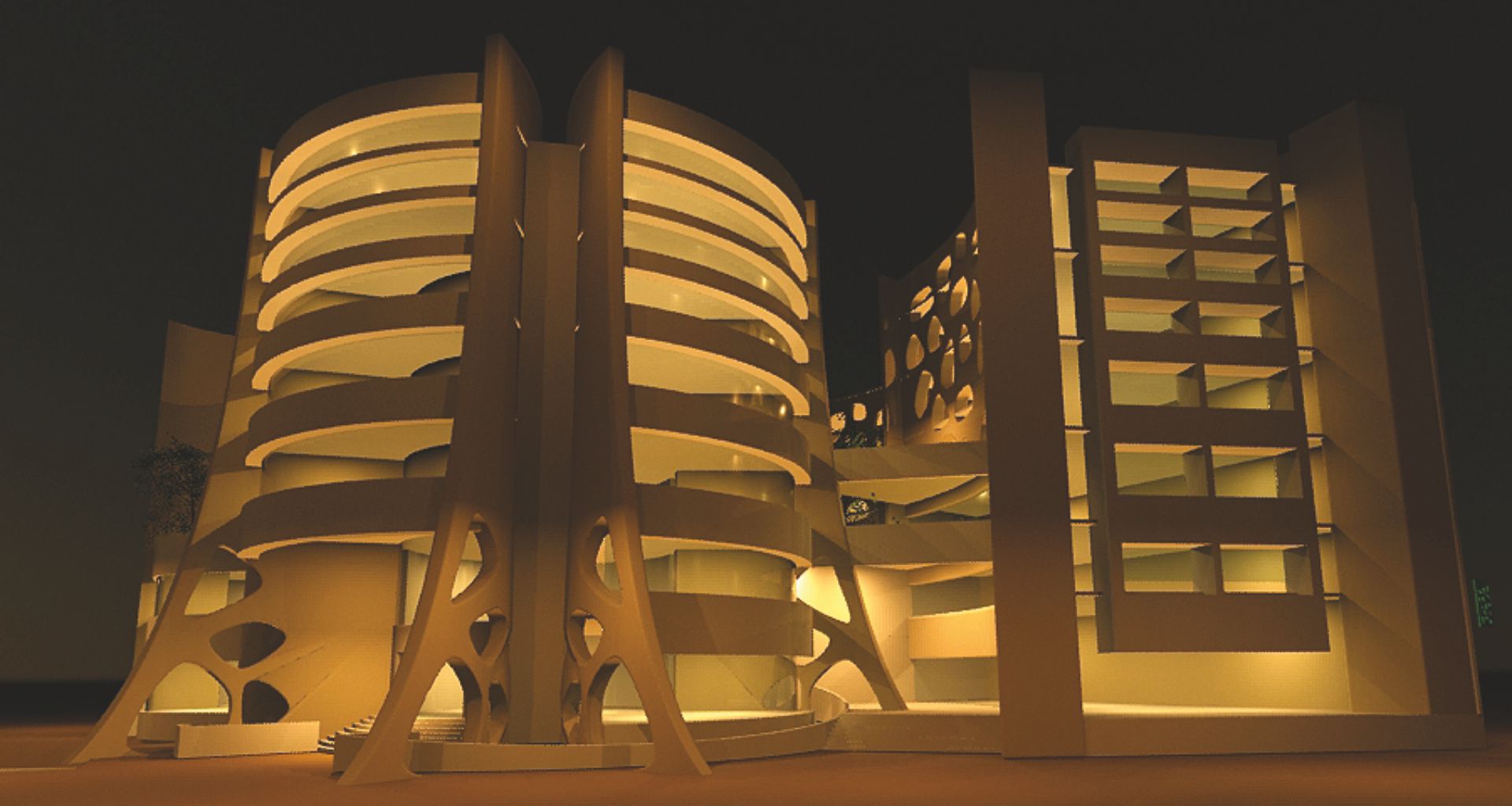 Design Philosophy: The Institute called for a unified design that would be extremely attractive; at the same time very useful for its diverse requirements of Hostel, Administration, Class rooms, Commercial Printing Press and more. This was easily accomplished with a structure that seamlessly brought together the different towers at the centre on a square-like plot.