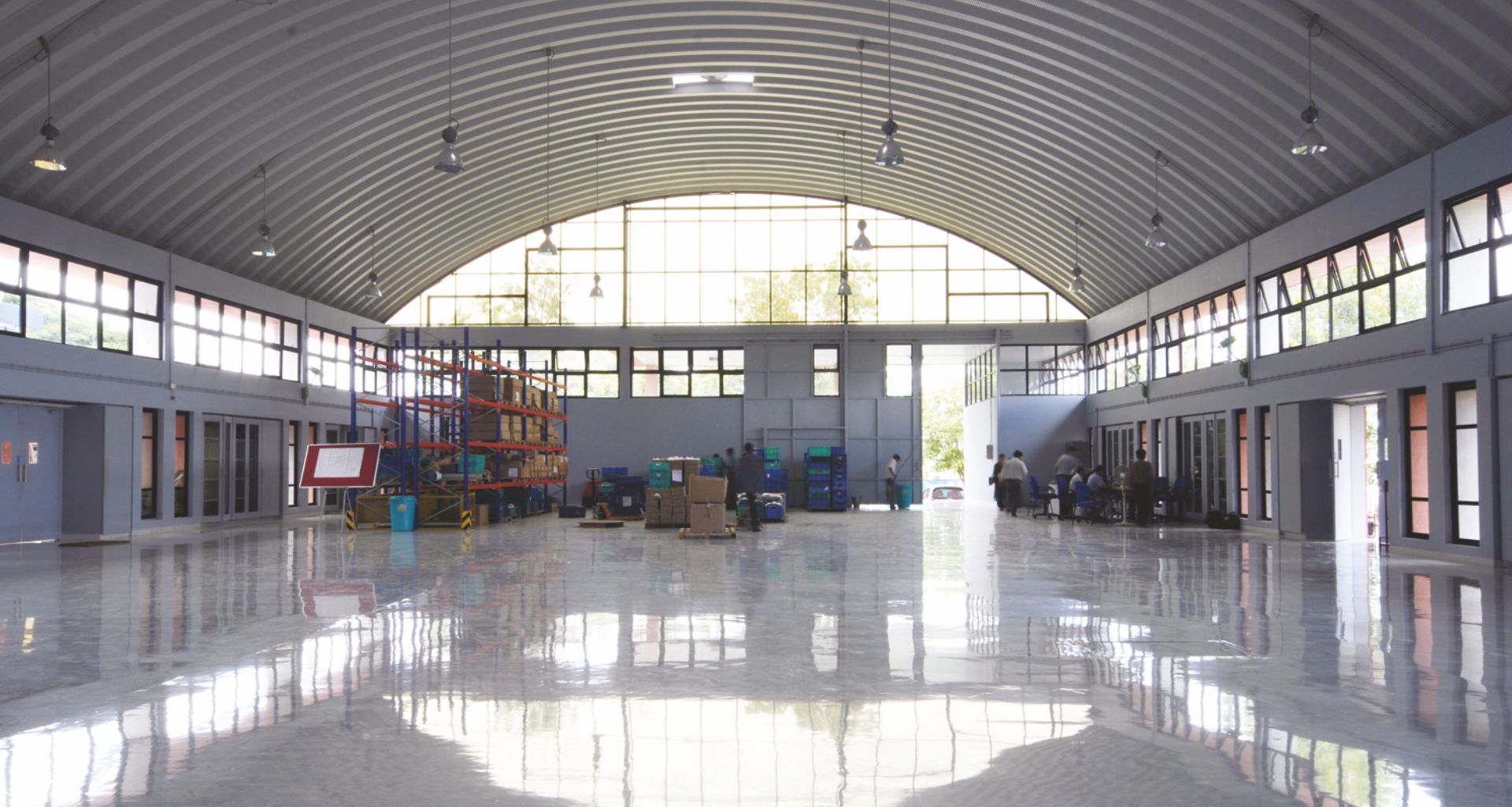 Design Philosophy: This is a radical departure from the archetypal factory shed design. Moving away from steel trusses, we have used the proflex roofing system. This allows clear space at all levels and obstruction-free volume at the top. The external walls of the shed are designed as storage areas with windows, thus creating a natural elevation based on the principal of ‘Form follows Function’. The unique design also ensures there is no obstruction to the shop floor.